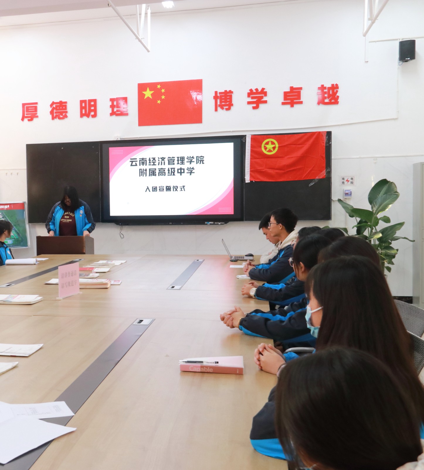 为加强共青团组织建设,增强团员的光荣感与使命感,2025年11月25日,云南经济管理学院附属高级中学在庄严的氛围中举行了新团员入团宣誓仪式。一批先进青年在师生的共同见证下,光荣地加入了中国共产主义青年团。