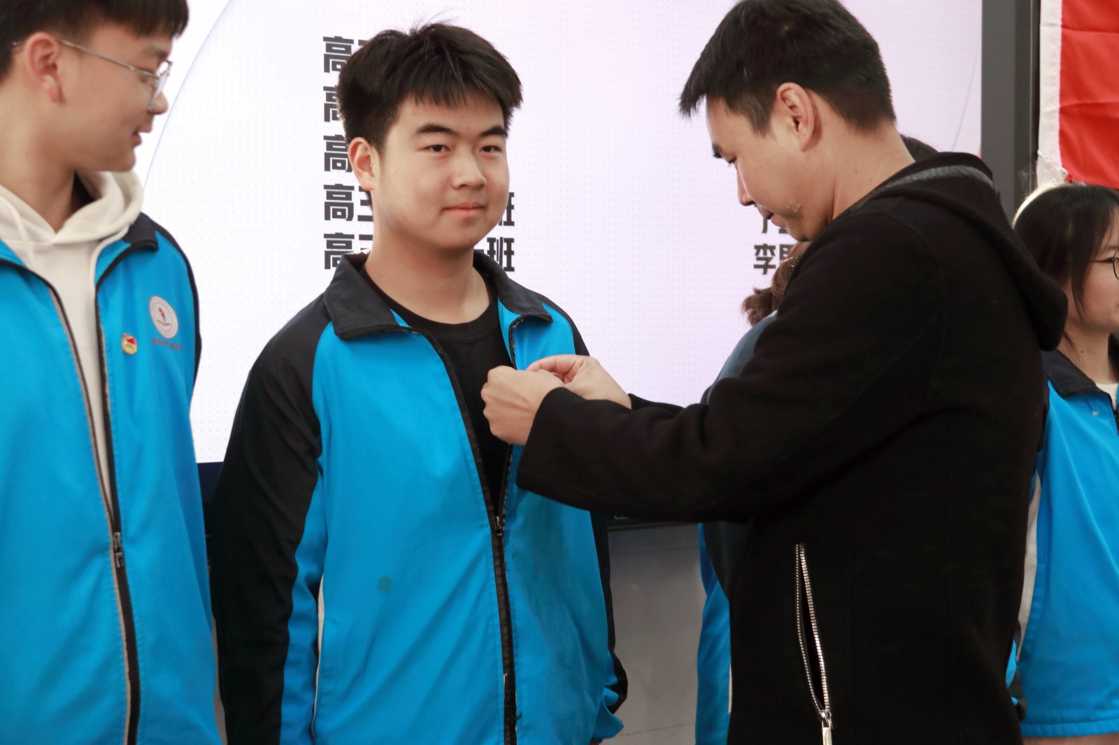 在庄重的乐曲中,夏超老师为新团员们逐一佩戴上熠熠生辉的团徽。这枚徽章,是荣誉的象征,更是沉甸甸的责任。